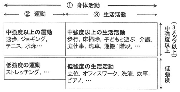 身体活動のうち,体力の維持・向上を目的として計画的・意図的に実践するものをいう。 - ③ 生活活動